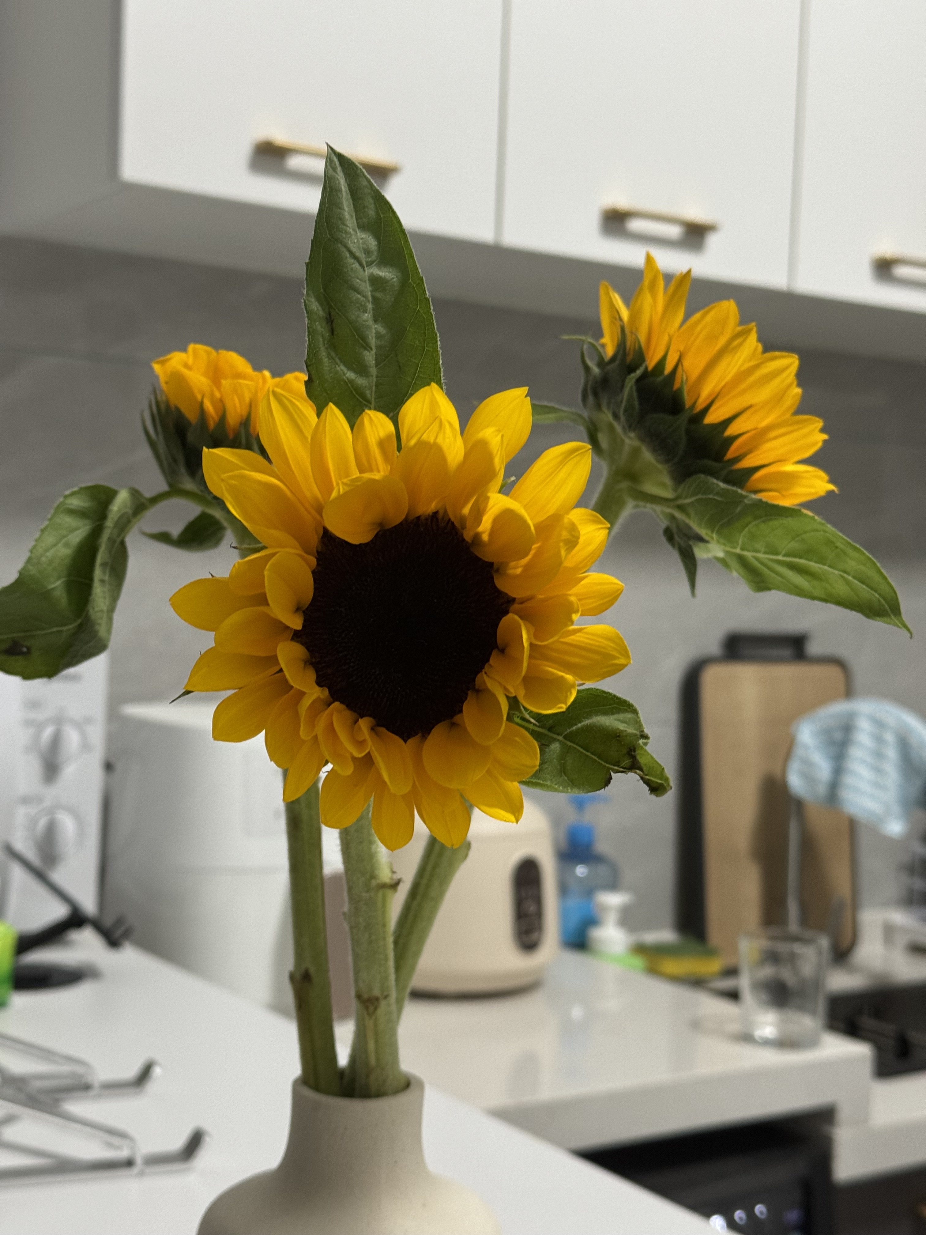 记录 2024 年第 203 天感觉最近喜欢上了养花,前面买的向日葵没一两天就枯萎了(后面知道是因为买的都是开了很久的),前几天在网上买了三朵含苞待放的向日葵,这两天早上起来看到每天都有开不少,好有成就感的 IMG_9327.jpeg