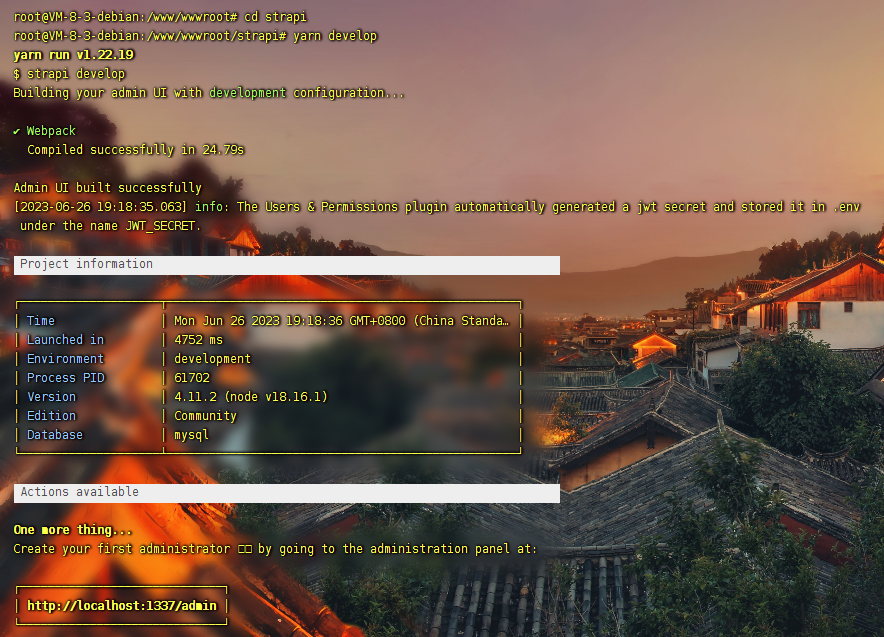 cd /www/wwwroot/strapi - 编译项目静态资源