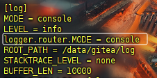 Gitea Deprecated config option `[log]` `ROUTER` present. Use `[log]` `logger.router.MODE` instead. This fallback will be/has been removed in 1.21