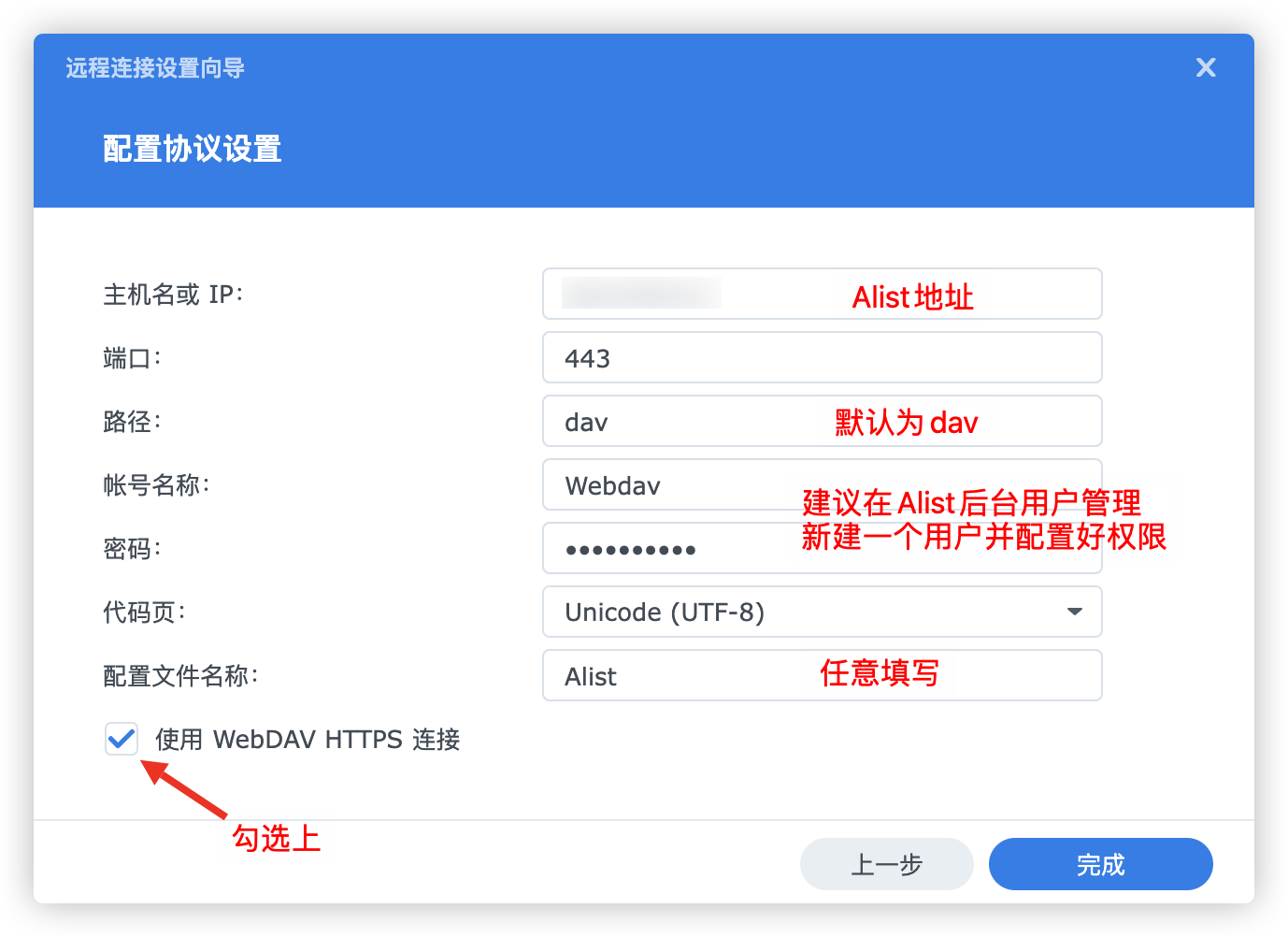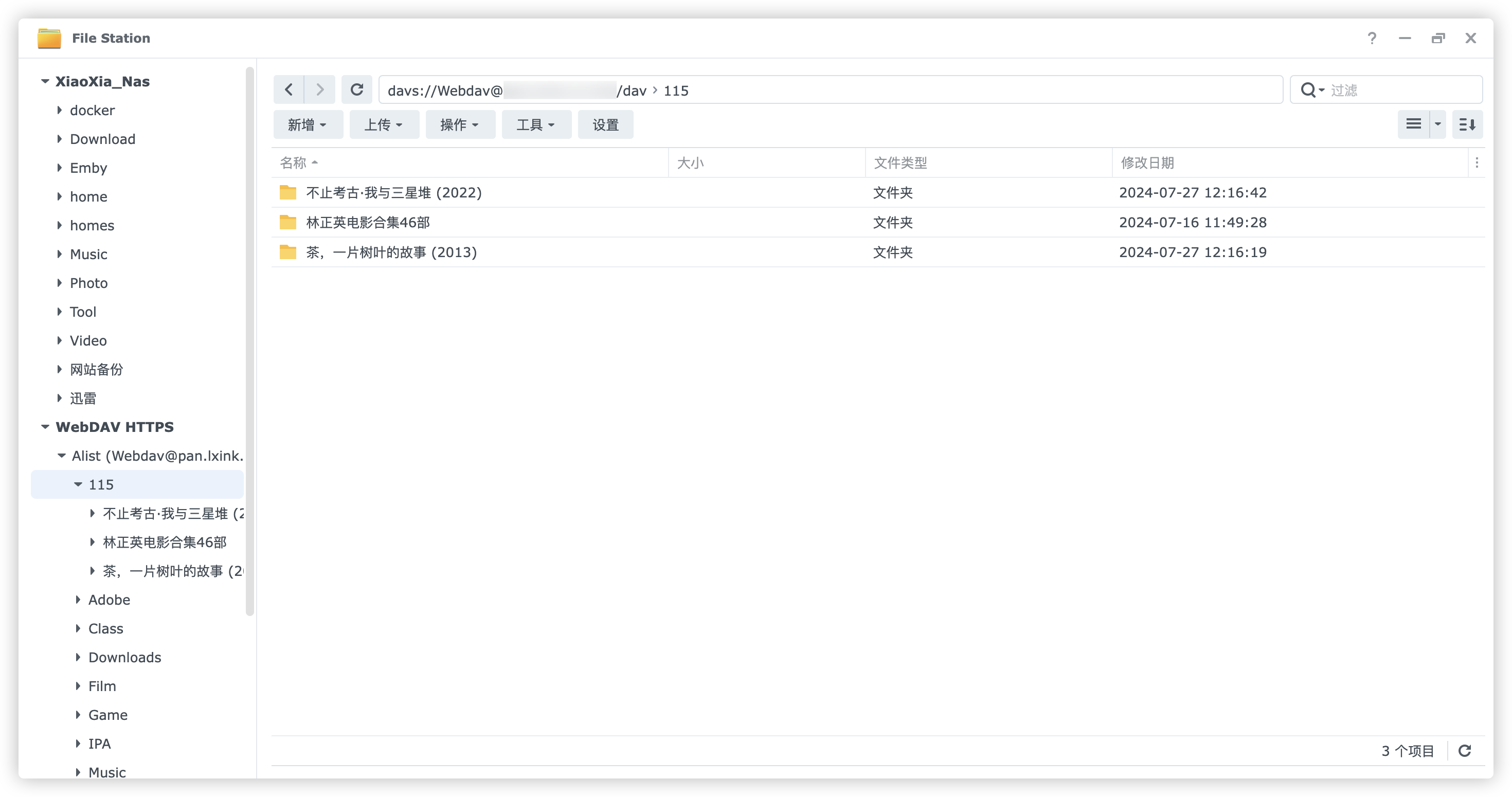 通过Alist挂载115,个人建议使用手机应用抓包的Cookie,有效期相对于比较长,挂载方法及抓包我这里就不过多赘述,网上教程有很多,挂载后在群晖的远程连接选择Webdav