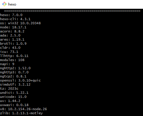 如果显示Hexo的版本为7.0,那么你恭喜你已经成功升级到最新的Hexo版本了。
