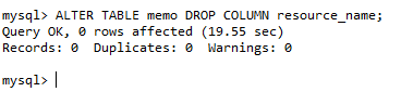 使用ALTER TABLE语句来删除memo表中resource_name列