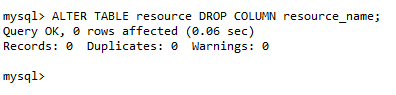 使用ALTER TABLE语句来删除resource中的resource_name列