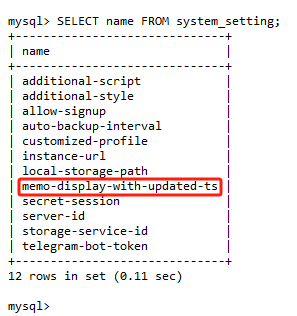 20240224更新:中午在给Memos添加Telegram Bot时发现无法正常添加使用,在仔细对比0.20.0和0.18.1数据表时发现多了一张reaction表,另外system_setting表中多了条低版本没有的记录memo-display-with-updated-ts