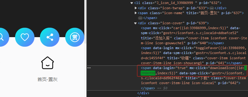 后面在控制台发现输入icon_id查找,发现每个图标都会class引用对应id样式,尝试着改了下此处id,并没反应。